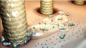 الفطريات تلتصق بالقشر وتؤدي الي انفصاله مما ينتج عنه قشرة الشهر المعروفة –